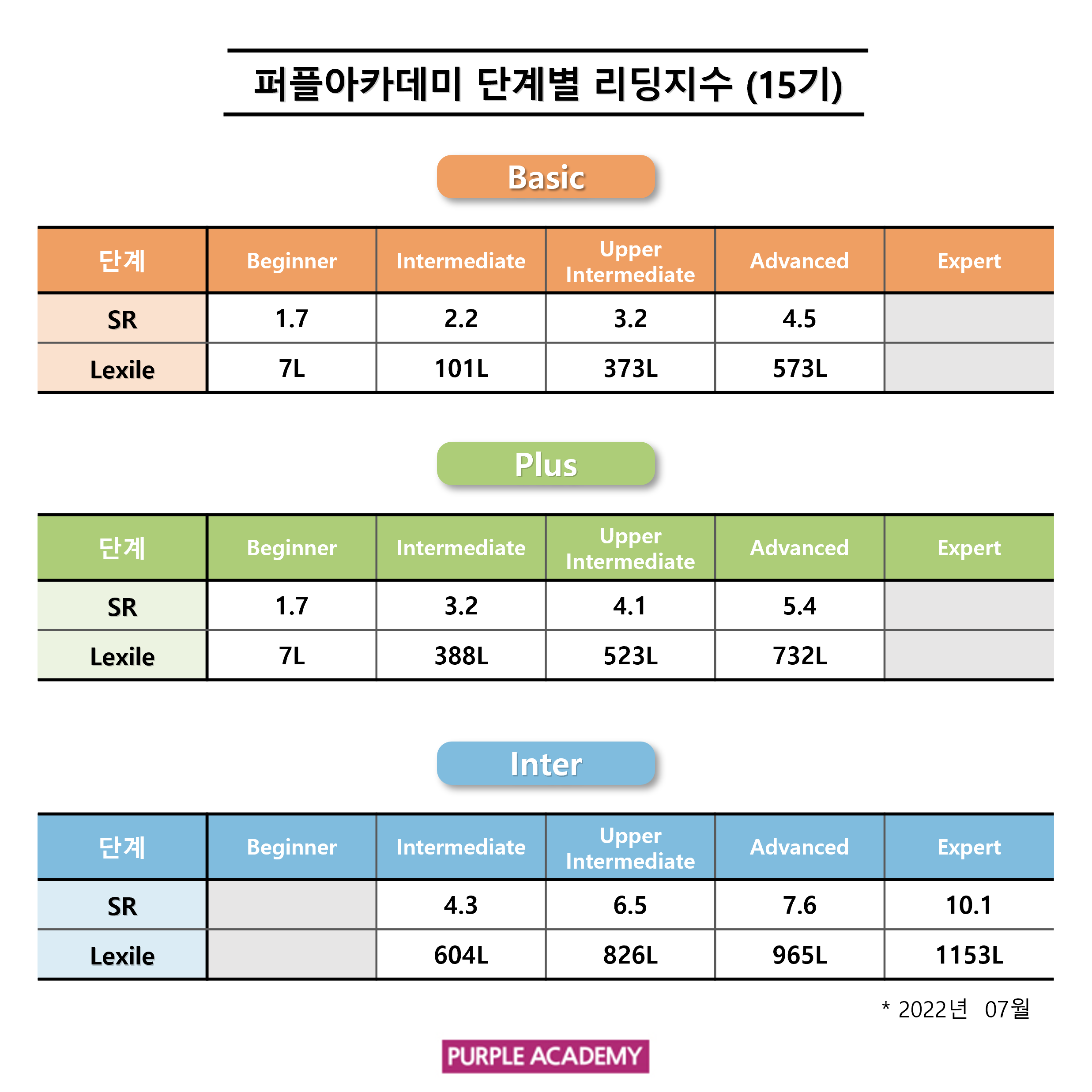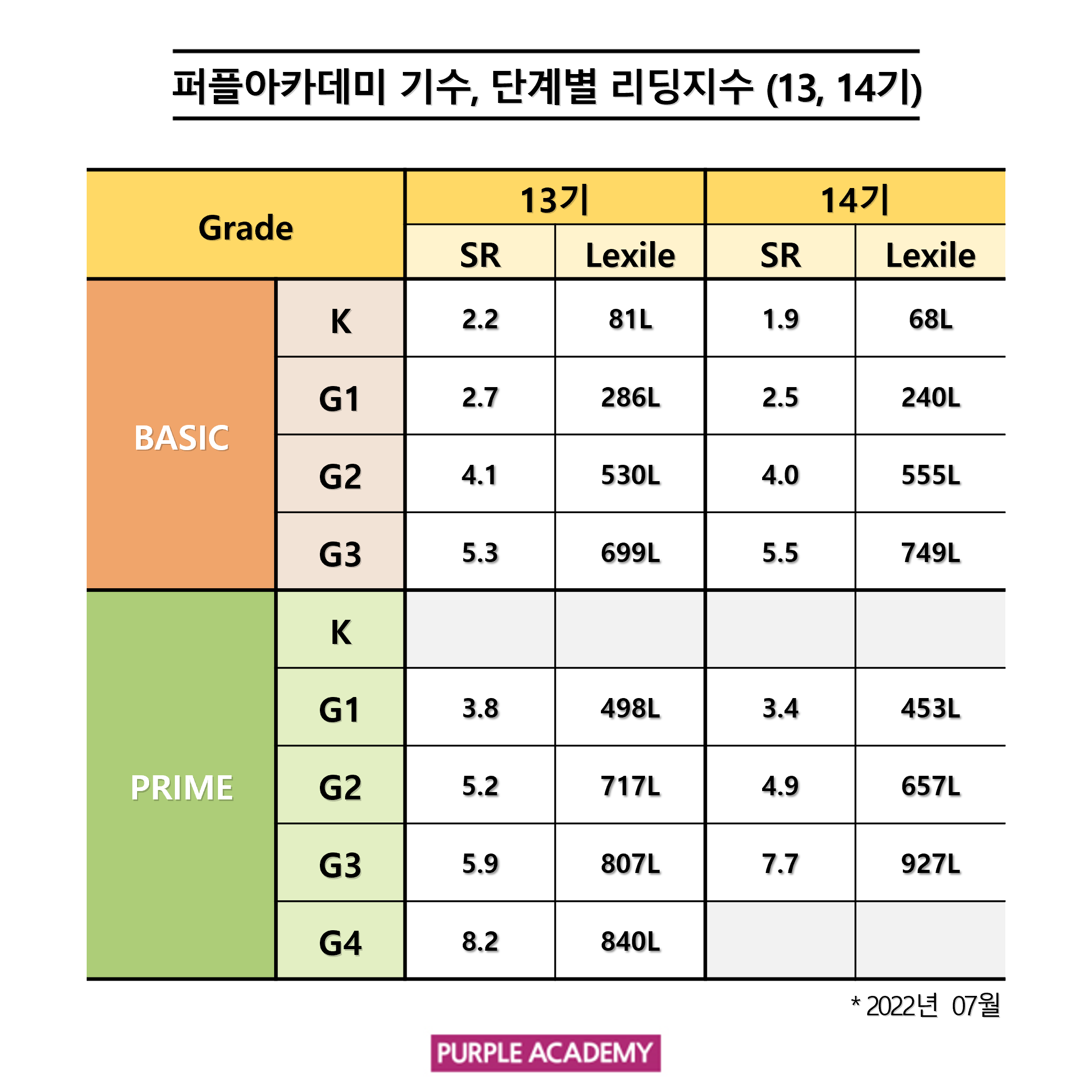 퍼플 Kids의 단계별, 기수별 2022년 7월 리딩 지수를 공개합니다!