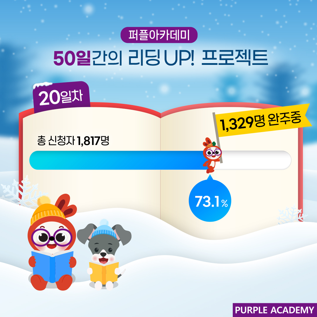 20일차 기준으로 총 1,817명 중 무려 1,329명이 20일 동안 매일매일 리딩 미션을 진행 중입니다!