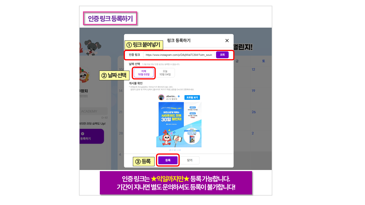 ⑤ 30일 동안 매일매일 인증 링크 등록하기!