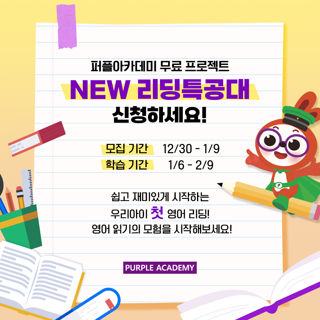 퍼플아카데미 리딩특공대 무료 프로젝트는 아직 퍼플아카데미 정규과정에 입학하지 않은 분들도