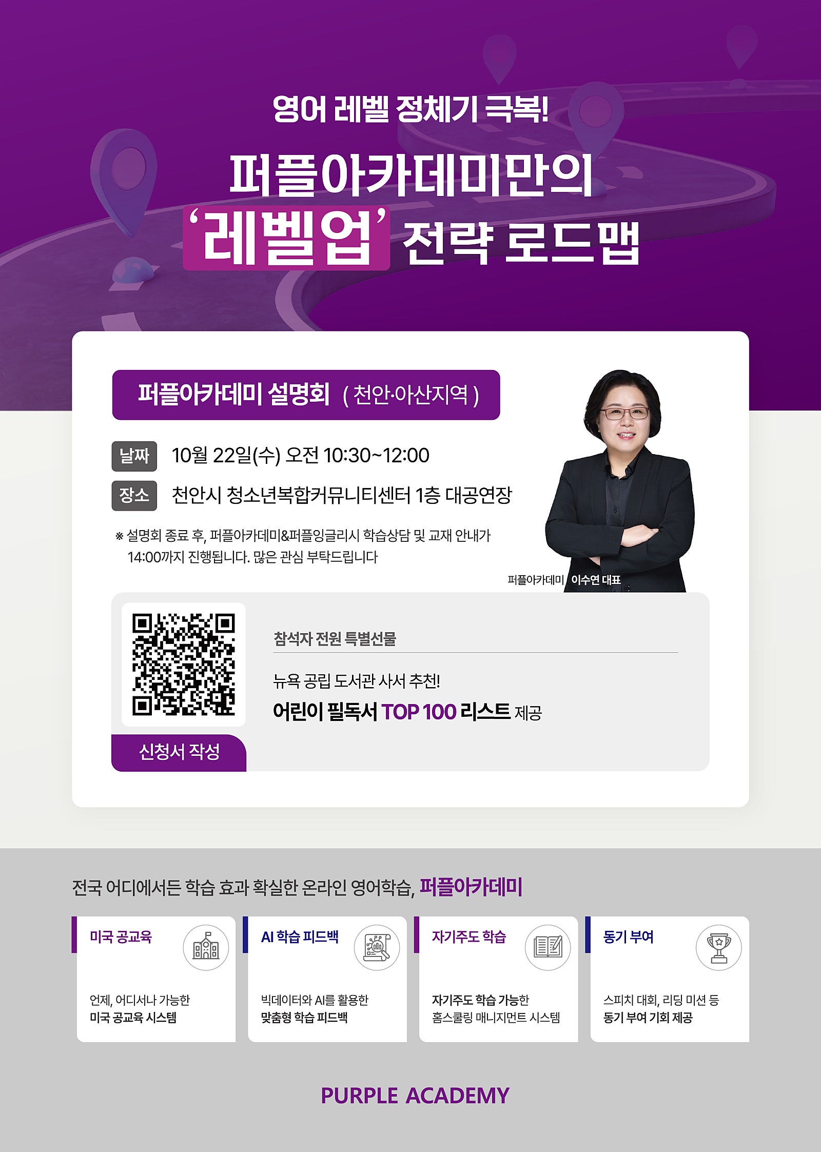 *설명회 종료 후, 퍼플아카데미&퍼플잉글리시 학습상담 및 교재 안내가 14:00까지 진행됩니다.