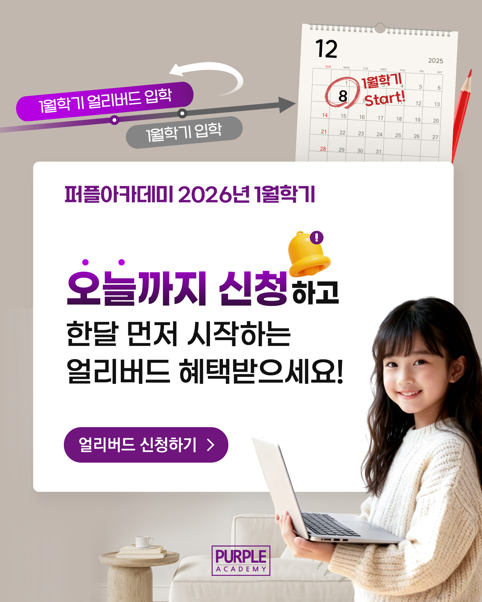 한 달 먼저 시작하는 얼리버드의 혜택! 1월 학기 시작 전, 퍼플아카데미의 학습 시스템이 오픈 됩니다!