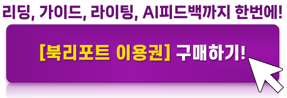 이용권 하나로 "리딩, 가이드 수업, 라이팅, AI피드백"까지 완벽하게 학습할 수 있는 [북리포트 이용권]을 알고 계셨나요?