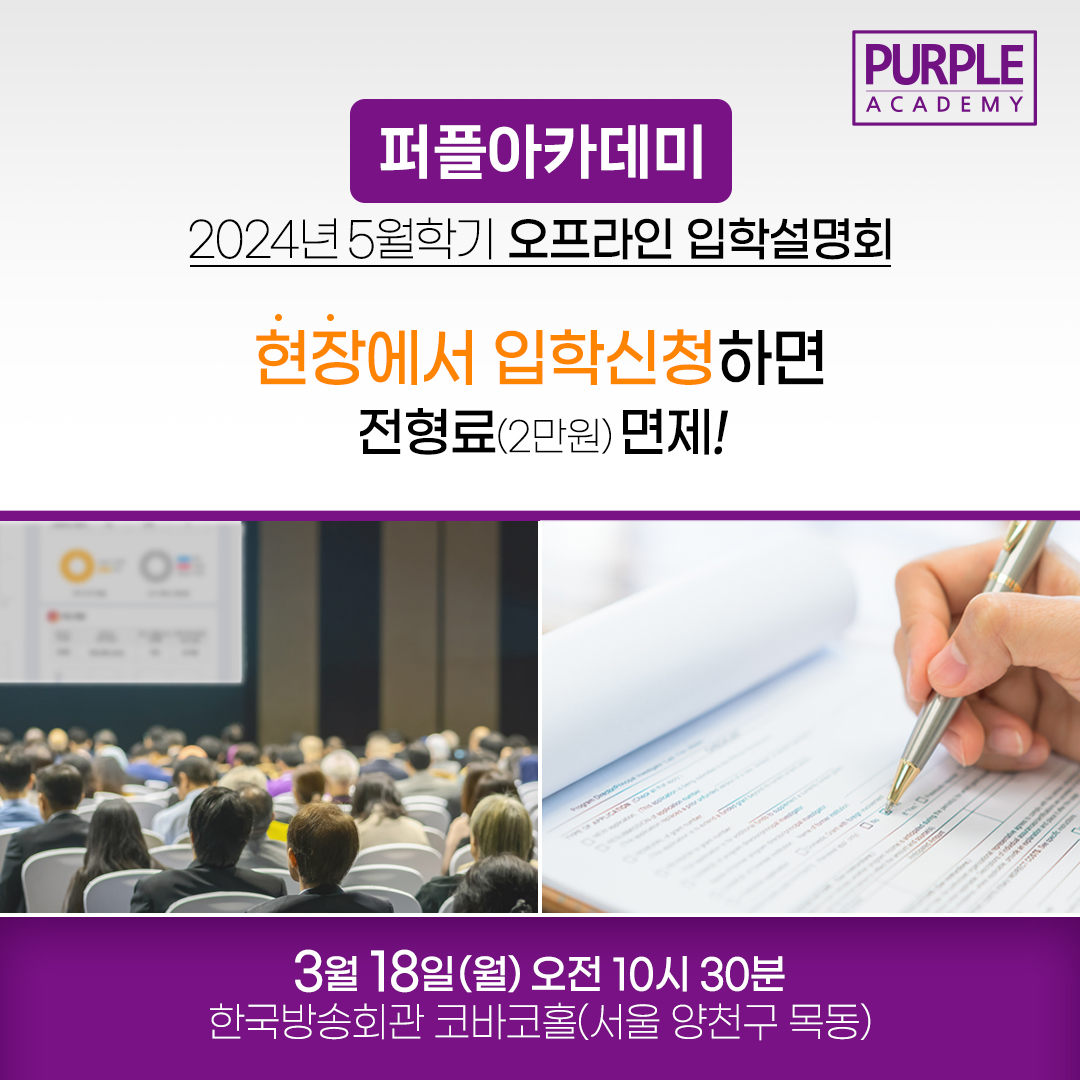 ★오프라인 설명회에 오셔서 현장에서 입학 신청을 하신 분들께는 전형료 면제 혜택이 제공됩니다!★