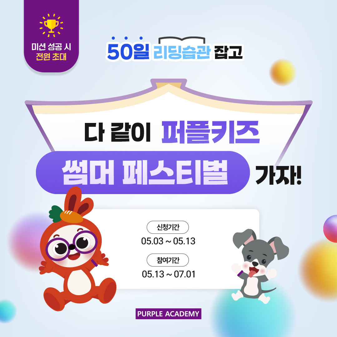 리딩 미션을 완주한 ★모든 친구들★을 퍼플키즈 썸머 페스티벌에 초대합니다!