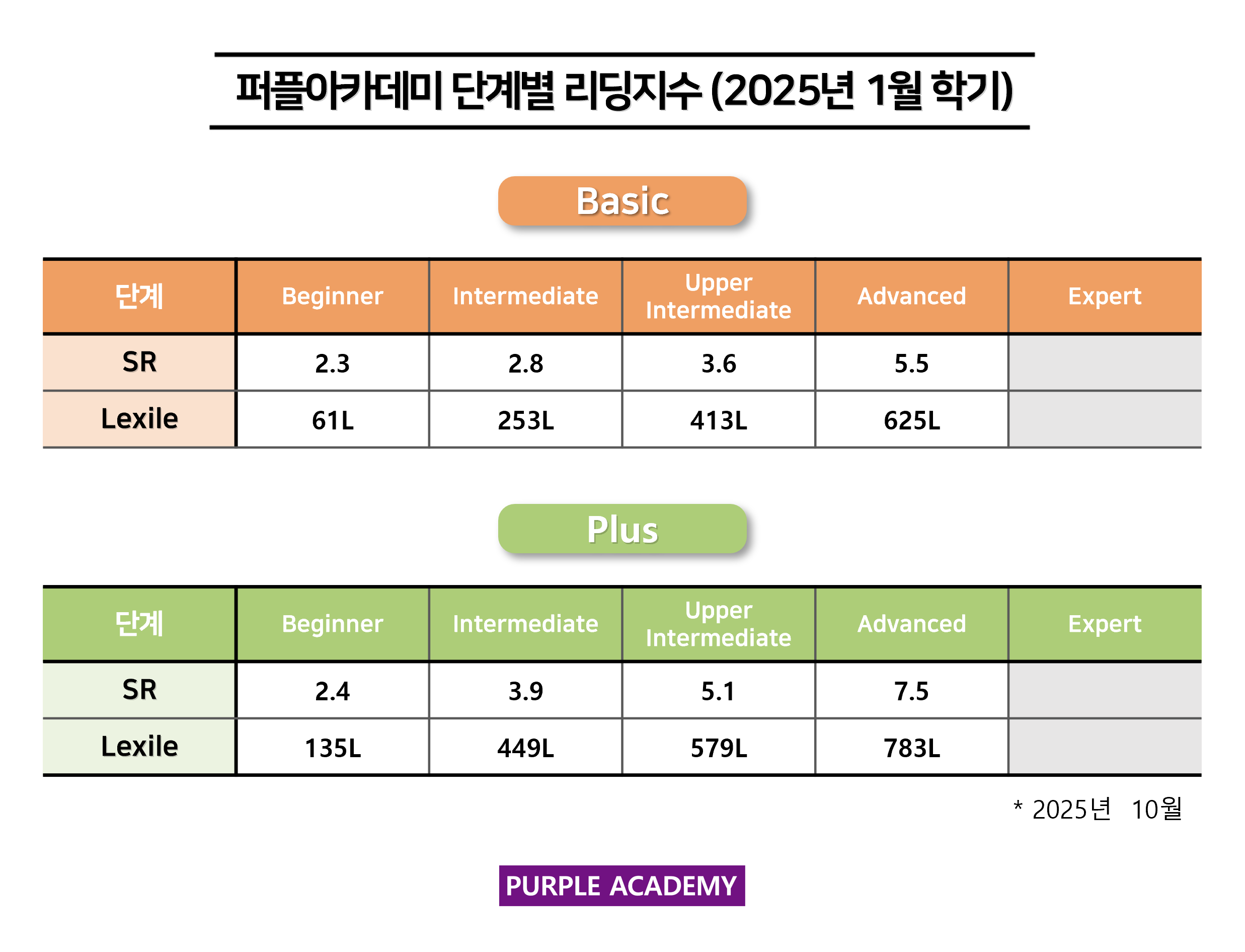 퍼플 Kids의 학기별, 단계별 2025년 10월 리딩 지수를 공개합니다!