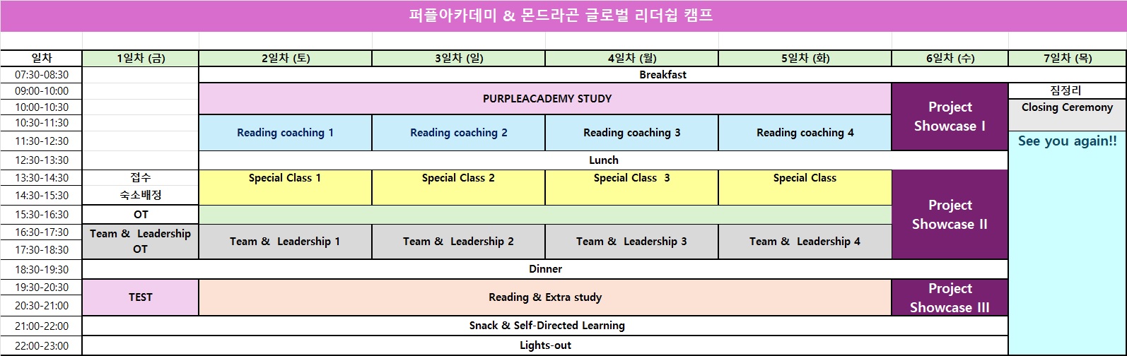 ■ 기간: 6박 7일, 전 일정 기숙사 생활