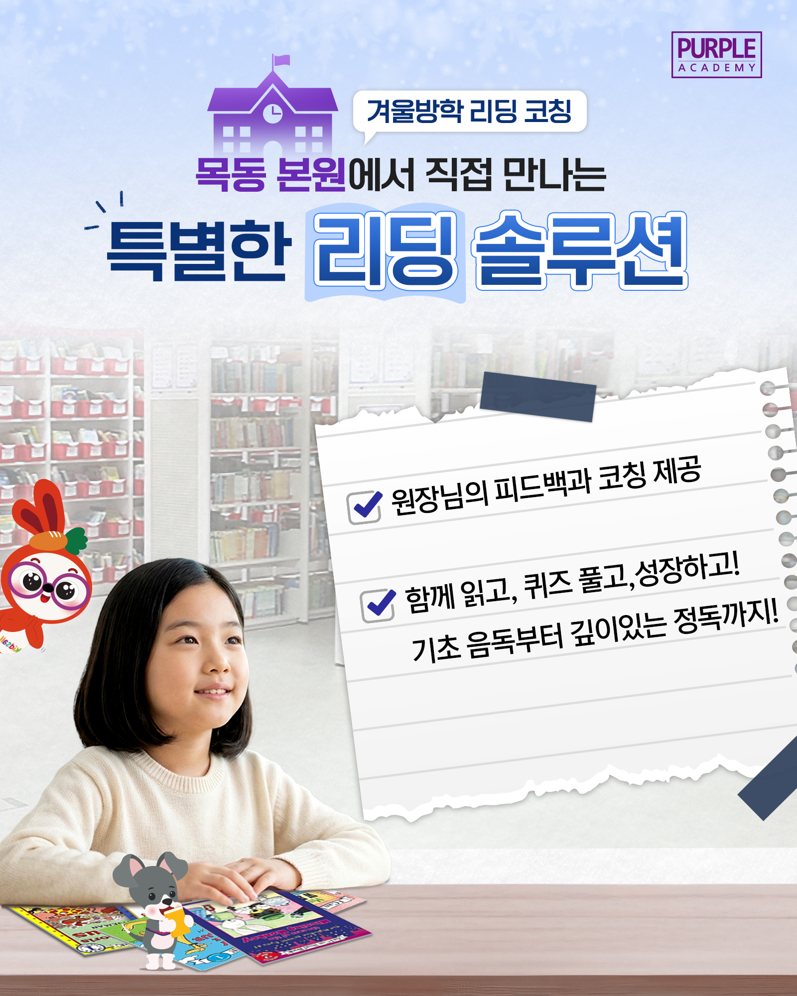 이번 겨울방학 리딩 코칭은 오프라인으로 목동 퍼플아카데미 본원에서 진행됩니다.